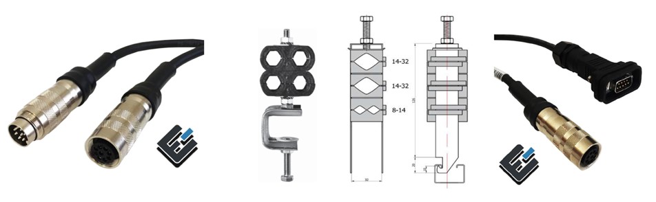 Összekötő elemek, vízálló IP67 csatlakozók, és egyedi szerelt kábelek.