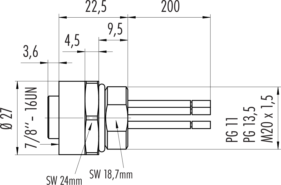 Polzahl: 4+PE, nicht geschirmt, Litzen, IP68, UL