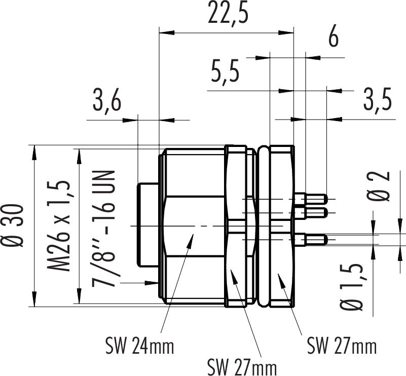 Polzahl: 4, nicht geschirmt, tauchlöten, IP68, UL