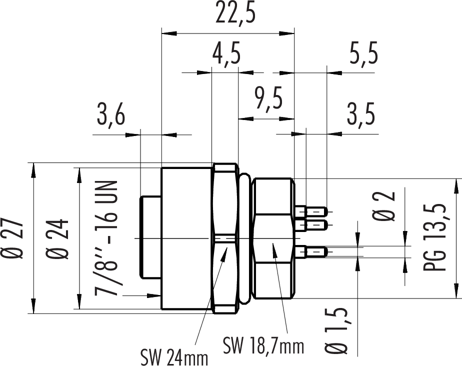 Polzahl: 4+PE, nicht geschirmt, tauchlöten, IP68, UL