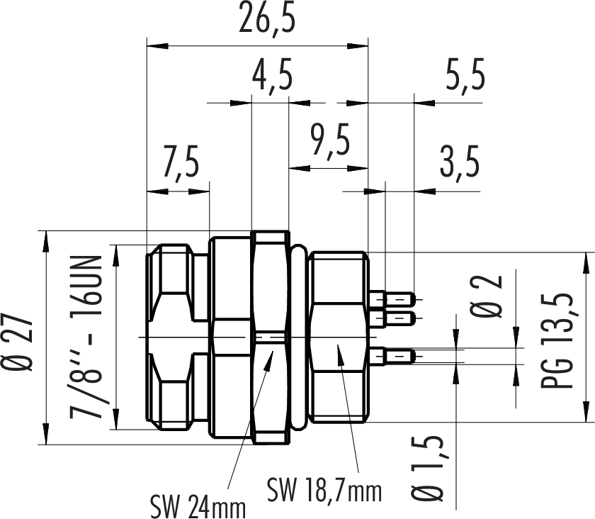 Polzahl: 4, nicht geschirmt, tauchlöten, IP68, UL