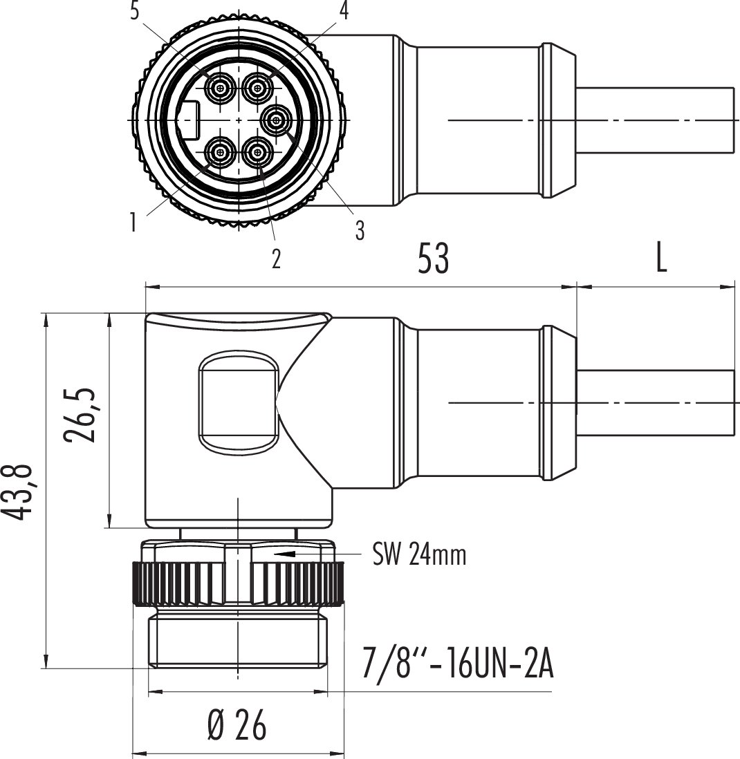 Polzahl: 5, nicht geschirmt, crimpen, am Kabel angespritzt, IP68, UL listed, 5 x 1,5 mm²