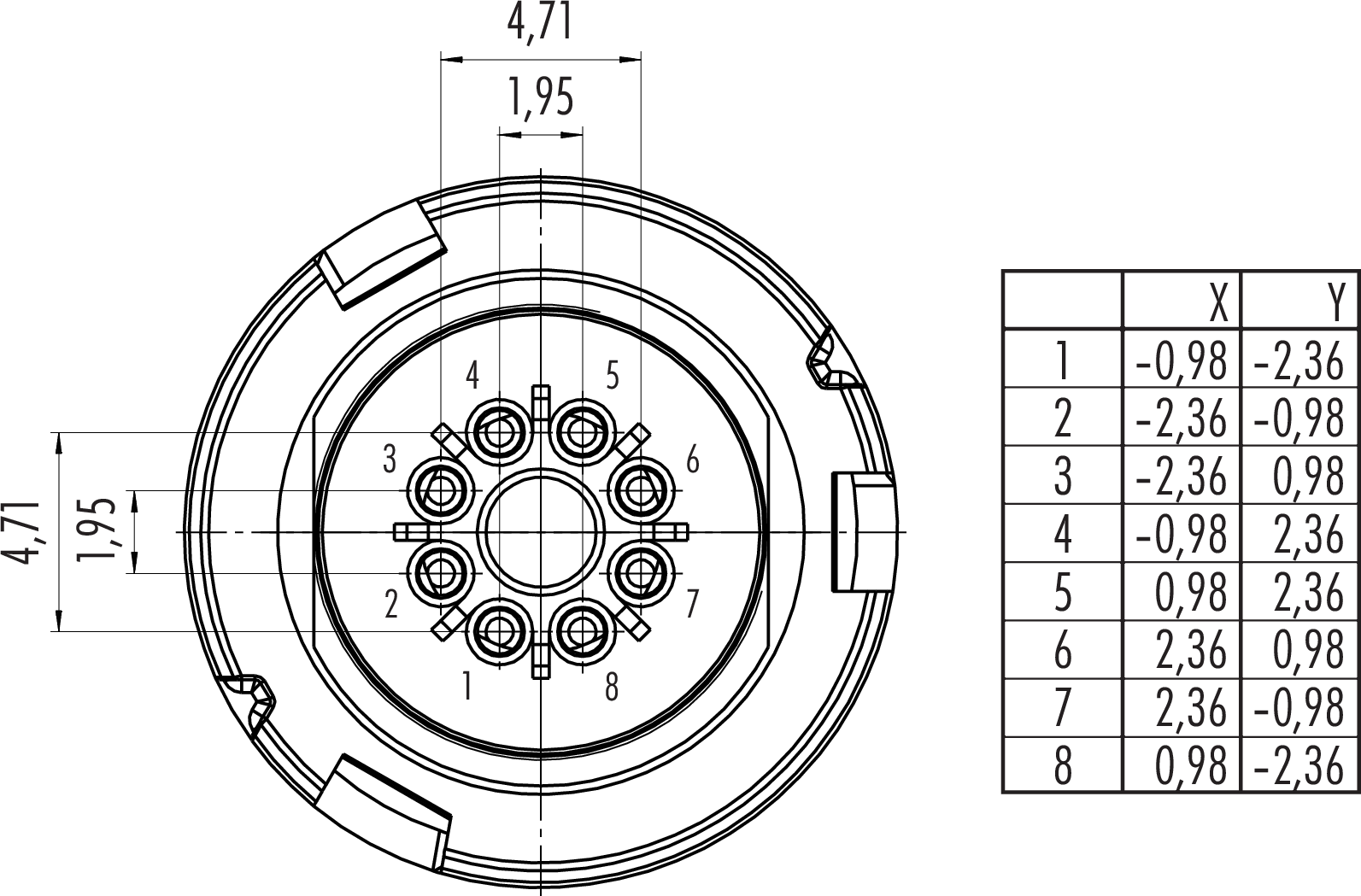 Polzahl: 8, 4,0 – 6,0 mm, löten, IP67