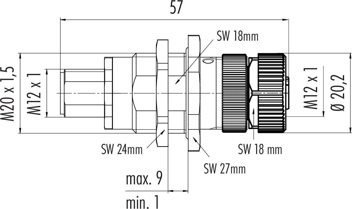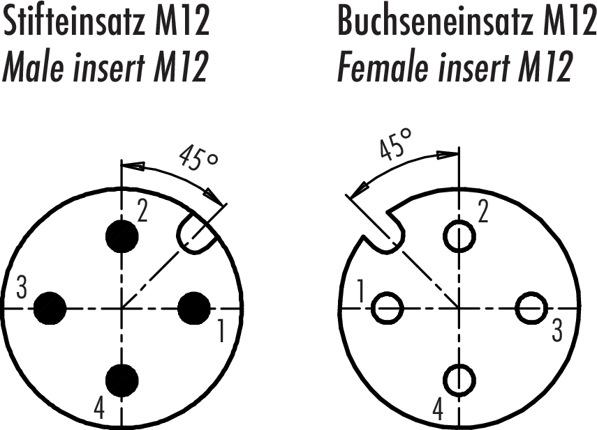 Polzahl: 4, nicht geschirmt, steckbar, IP67, M12x1