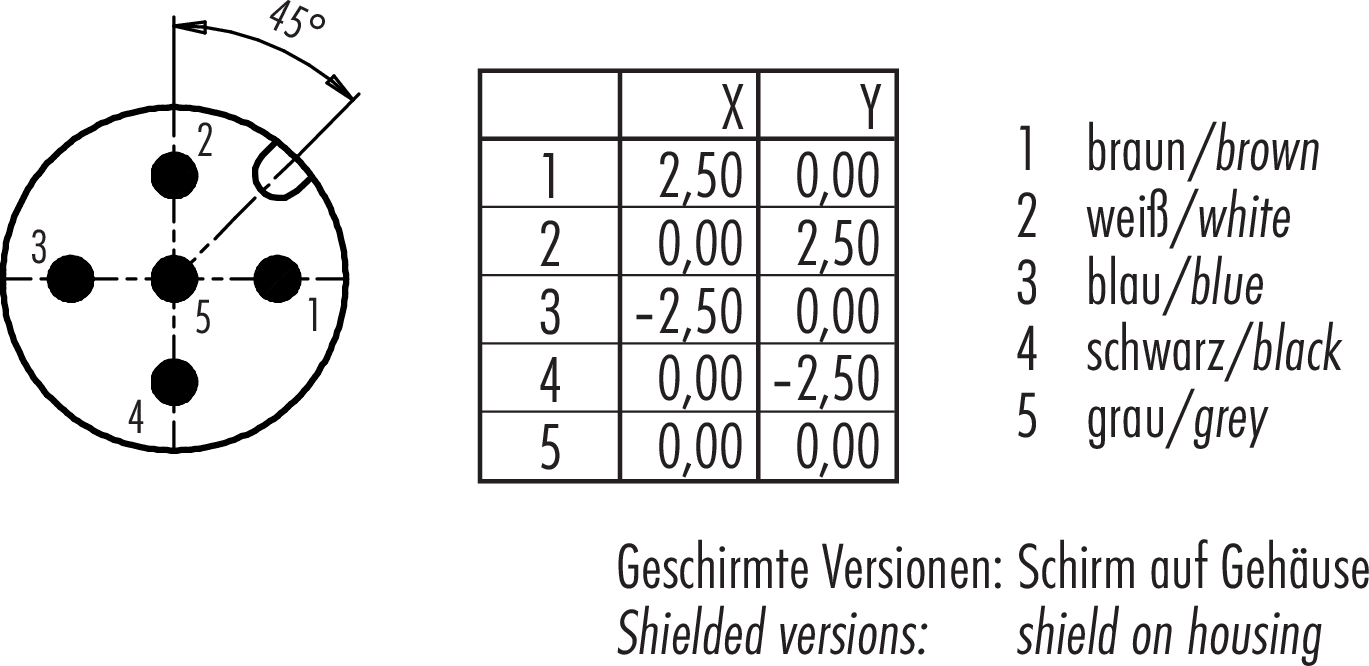 Polzahl: 5, schirmbar, reflow löten, IP67