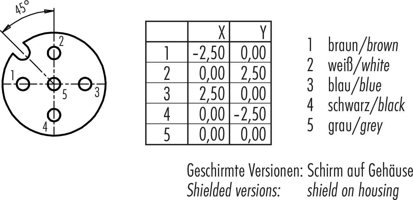 Polzahl: 5, nicht geschirmt, tauchlöten, IP68, UL, M16x1,5