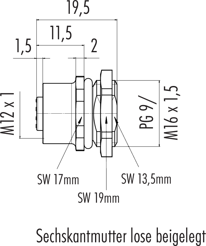 Polzahl: 4, nicht geschirmt, löten, IP68, UL, M16x1,5