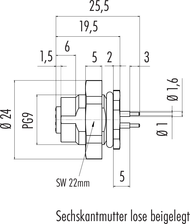 Polzahl: 5, nicht geschirmt, tauchlöten, IP68, UL, PG9