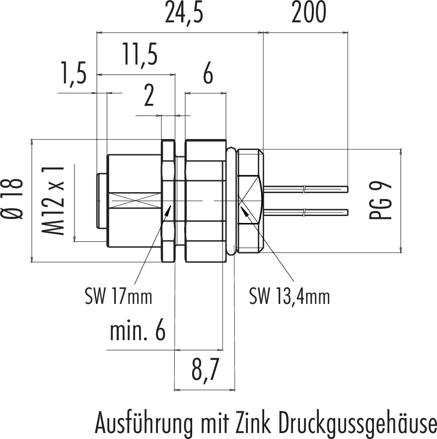 Polzahl: 4, nicht geschirmt, Litzen UL 1007/1569, IP68, UL, PG9 pos.