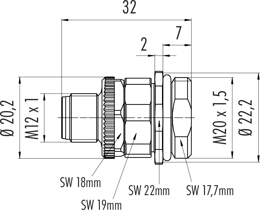 Polzahl: 4, nicht geschirmt, Litzen UL 1007/1569, IP68, M16x1,5 FMT