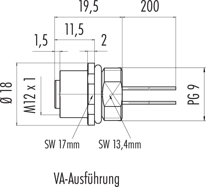Polzahl: 12, nicht geschirmt, Litzen UL 1007/1569, IP68, UL, PG9 VA