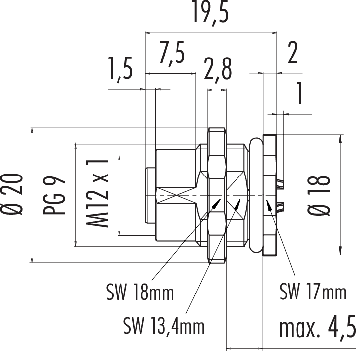 Polzahl: 5, nicht geschirmt, löten, IP68, UL, PG9