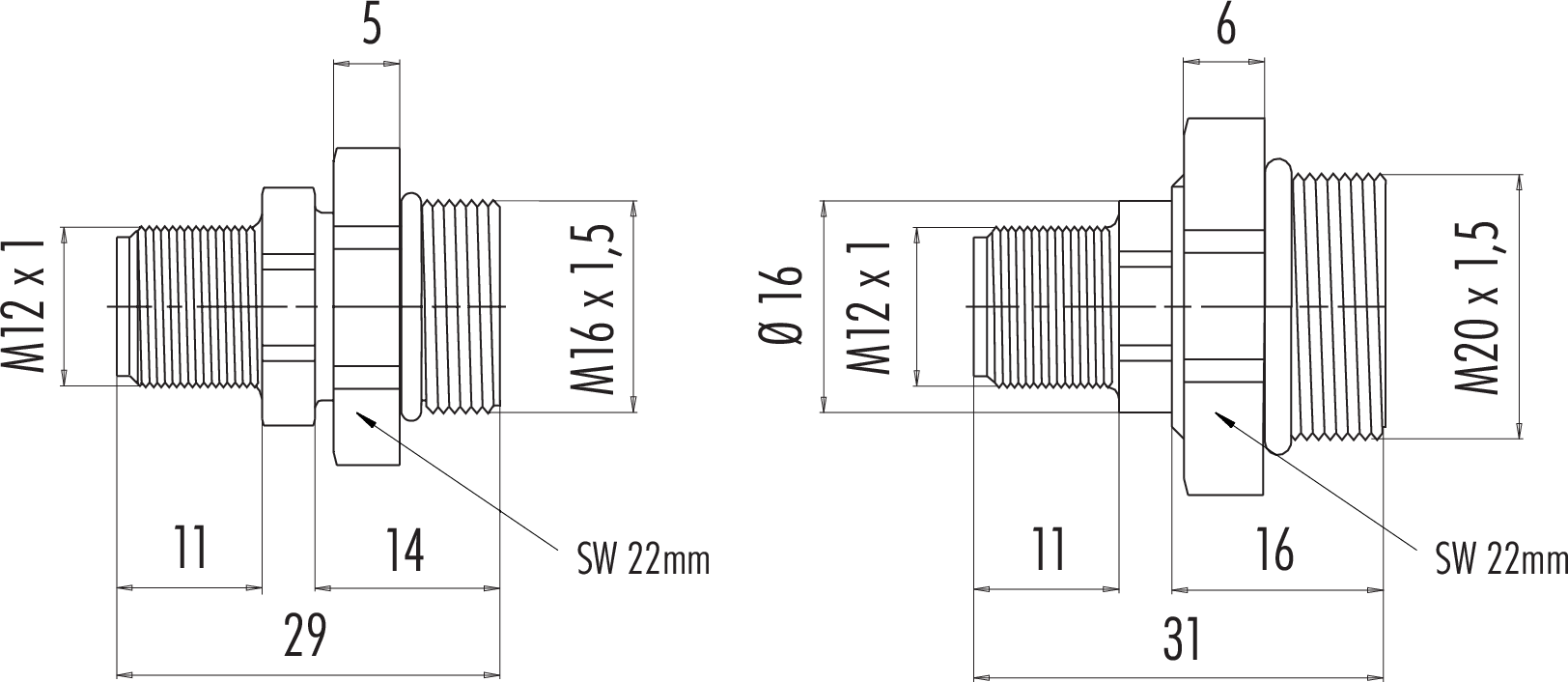 Polzahl: 4, nicht geschirmt, löten, IP67, M20x1,5