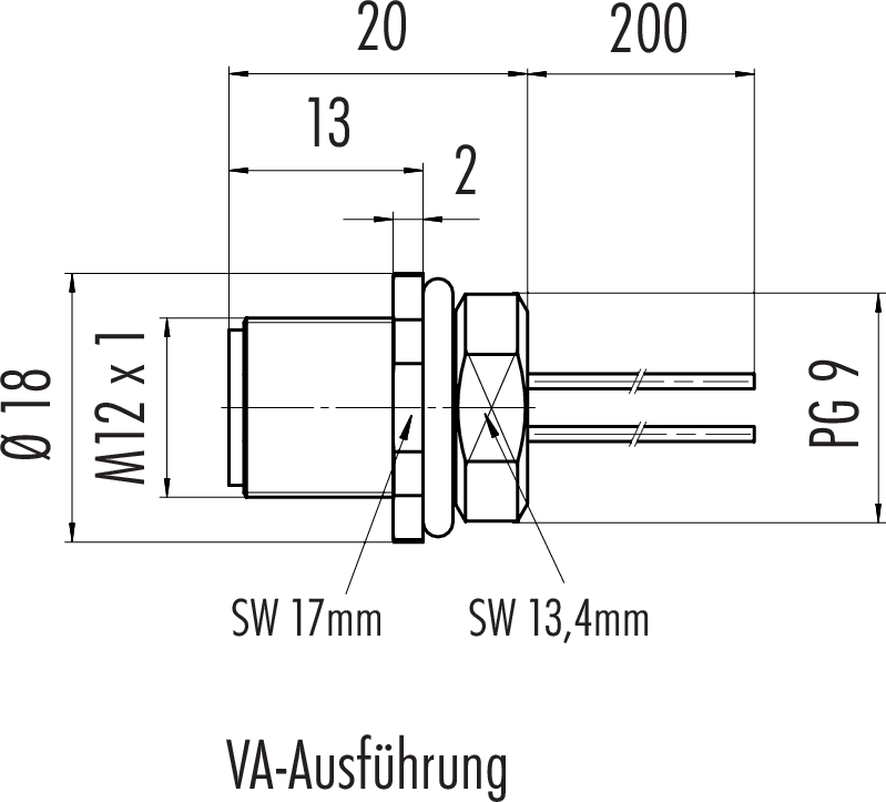 Polzahl: 5, nicht geschirmt, Litzen UL 1007/1569, IP68, UL, PG9 VA