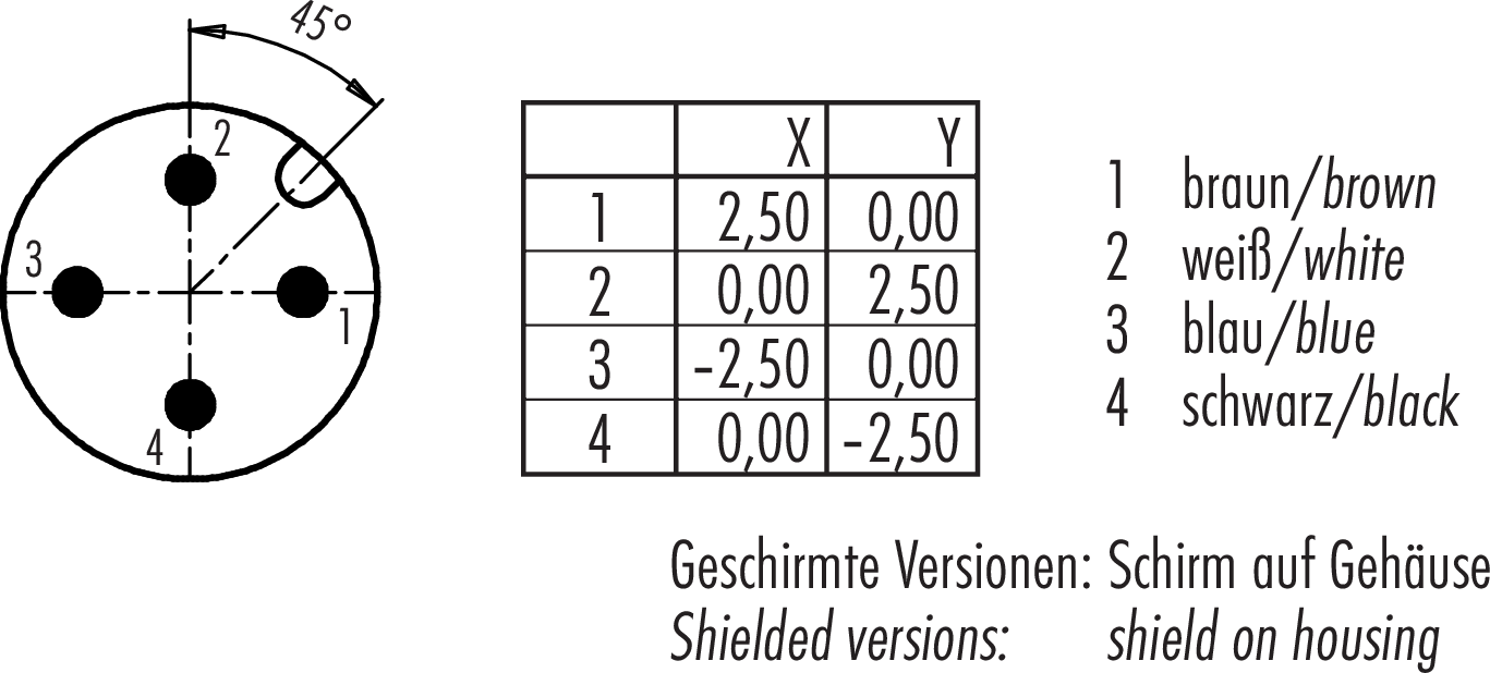 Polzahl: 4, nicht geschirmt, tauchlöten, IP68, UL, M16x1,5