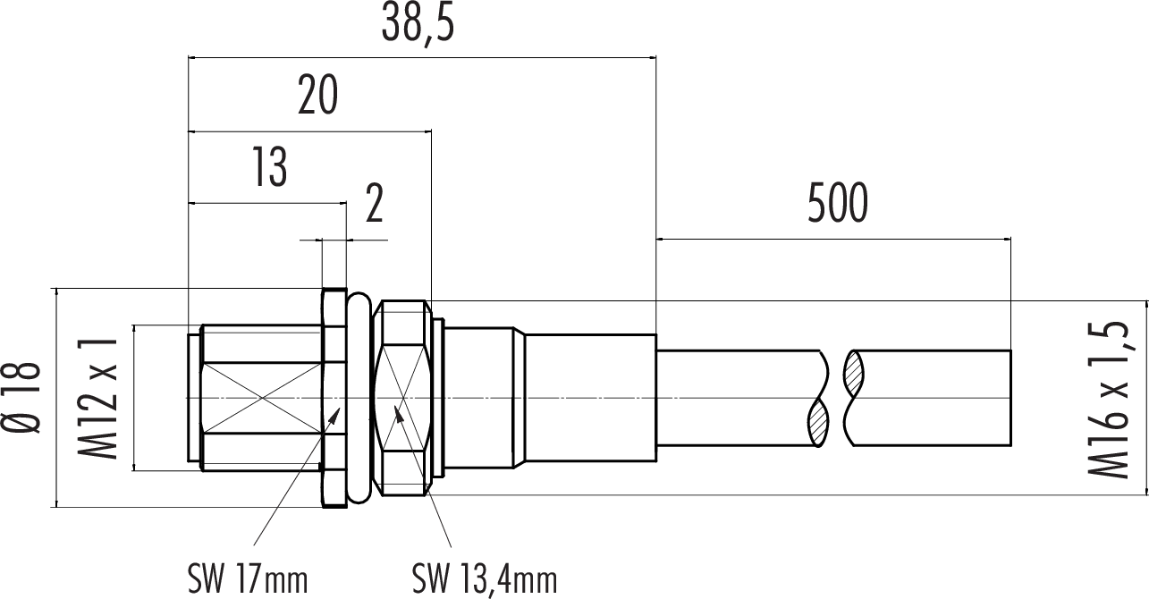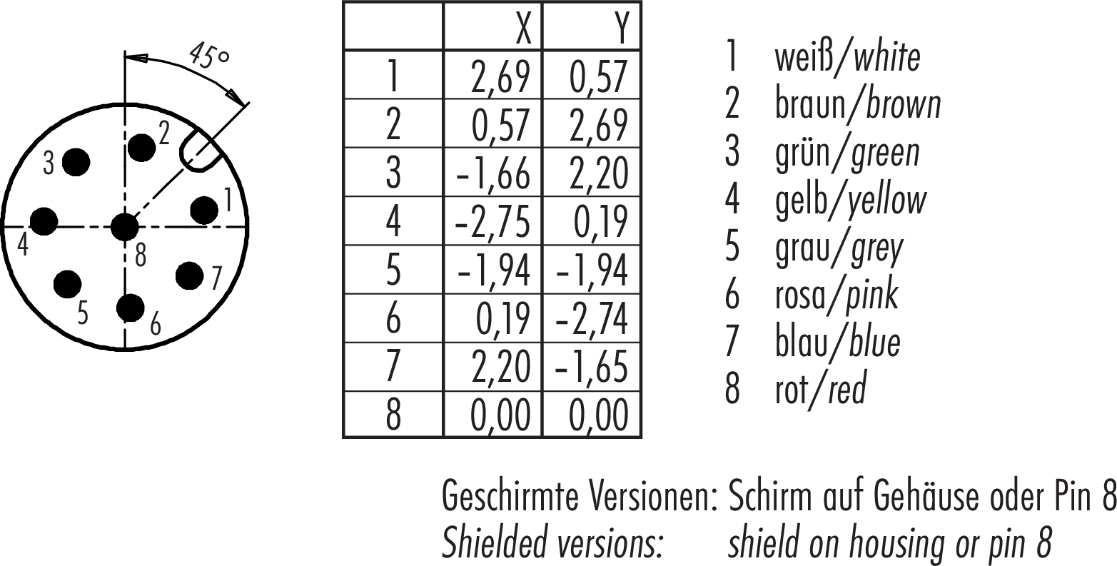 Polzahl: 8, geschirmt, Kabel, IP68, M16x1,5