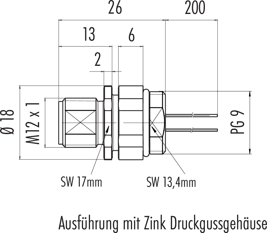 Polzahl: 4, nicht geschirmt, Litzen UL 1007/1569, IP68, UL, PG9 pos.