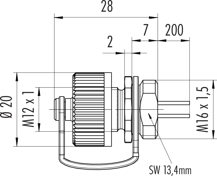 Polzahl: 4, nicht geschirmt, Litzen UL 1007/1569, IP68, M16x1,5