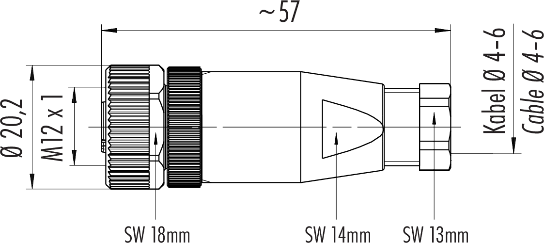 Polzahl: 4, 4,0 – 6,0 mm, nicht geschirmt, crimpen (Crimpkontakte müssen separat bestellt werden), IP67, UL