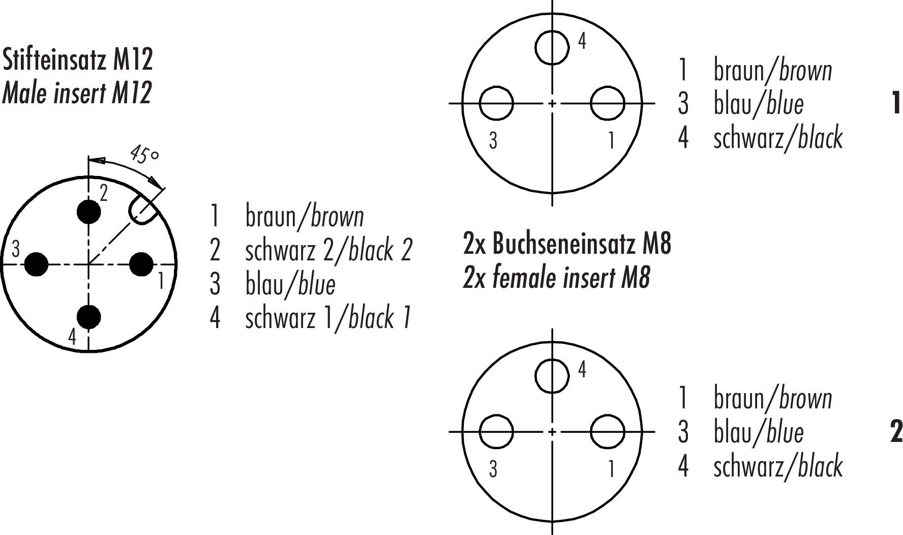 Polzahl: 3/4, nicht geschirmt, crimpen, am Kabel angespritzt, IP67, 4 x 0,25 mm²