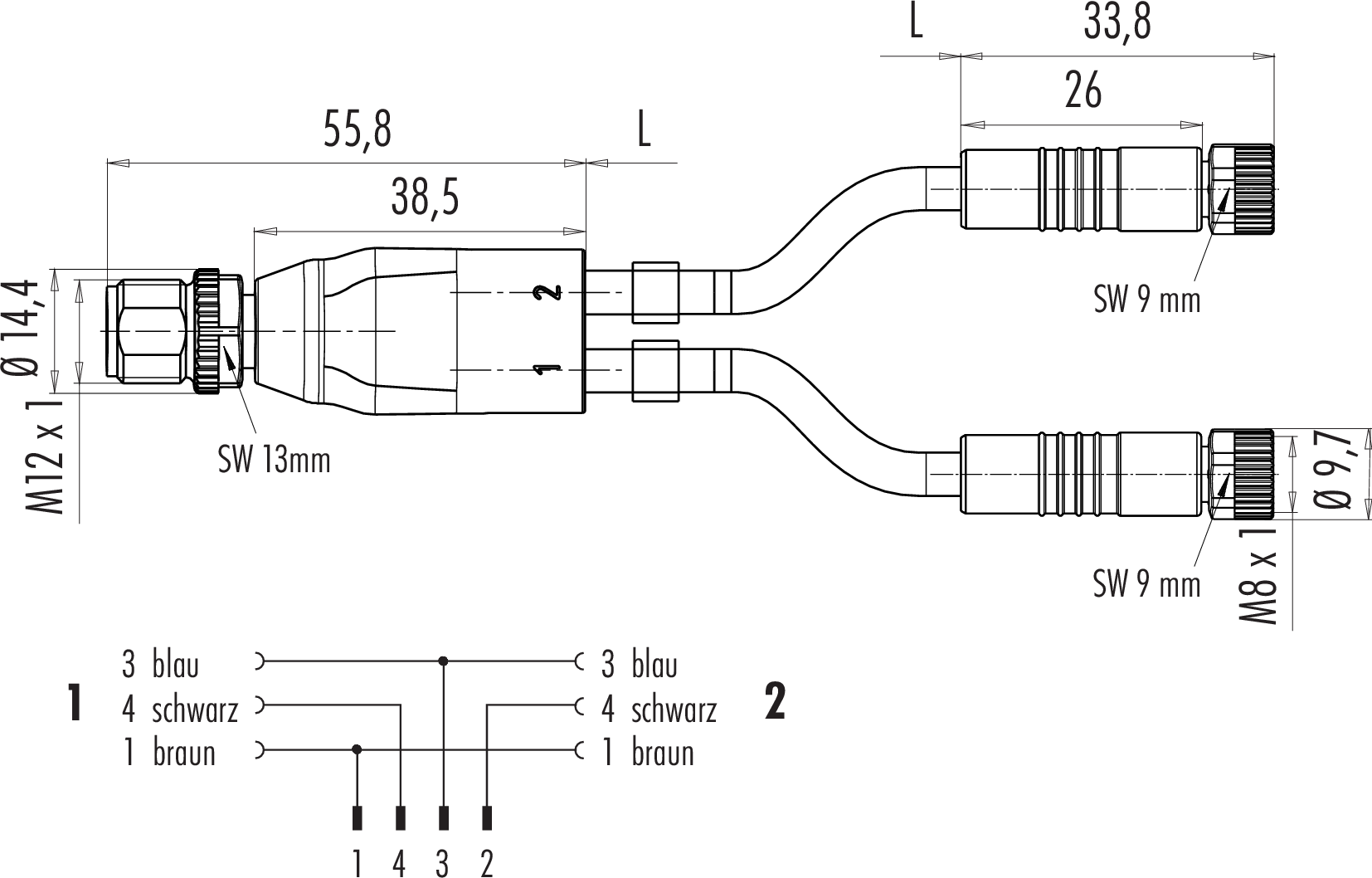 | Anschlussart | crimpen, am Kabel angespritzt |