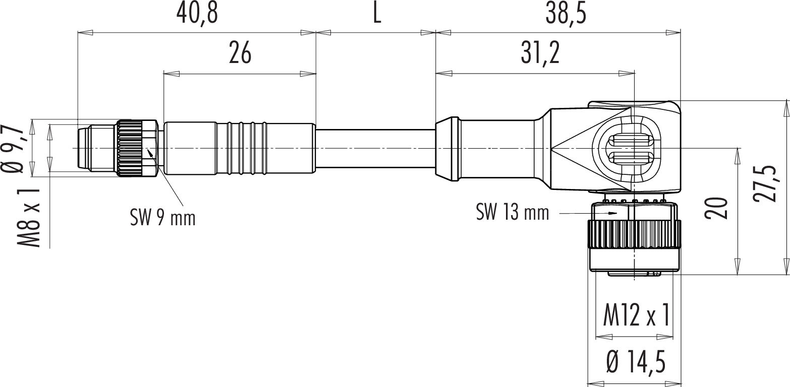 Polzahl: 4, nicht geschirmt, crimpen, am Kabel angespritzt, IP67, 4 x 0,25 mm²