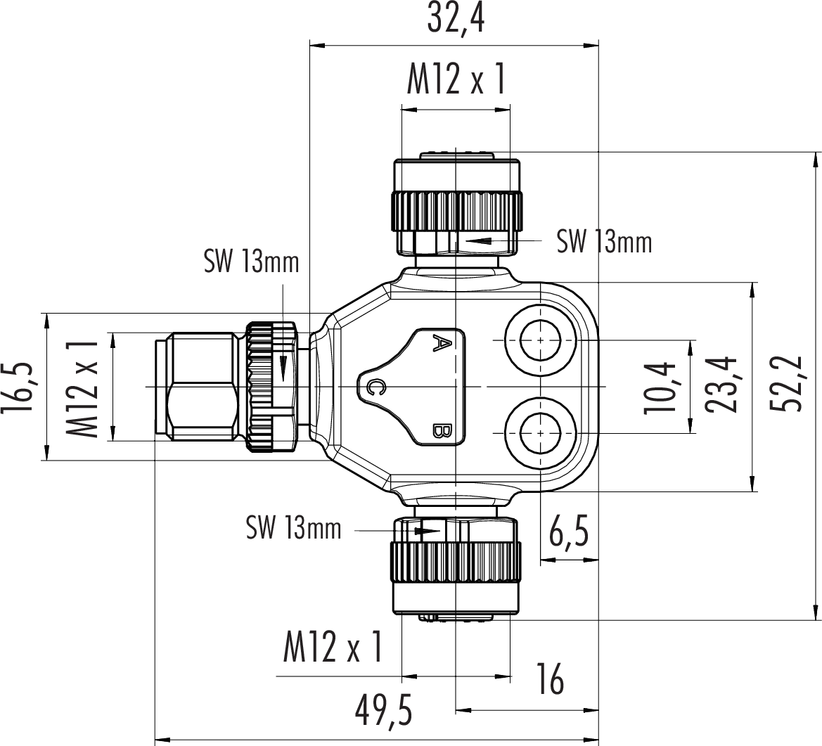 Polzahl: 5, nicht geschirmt, steckbar, IP68, UL listed, M12x1