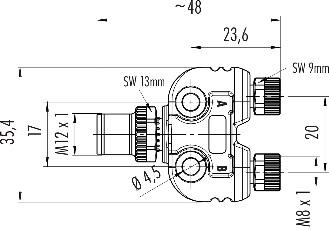 Polzahl: 4/3, nicht geschirmt, steckbar, IP68, UL listed