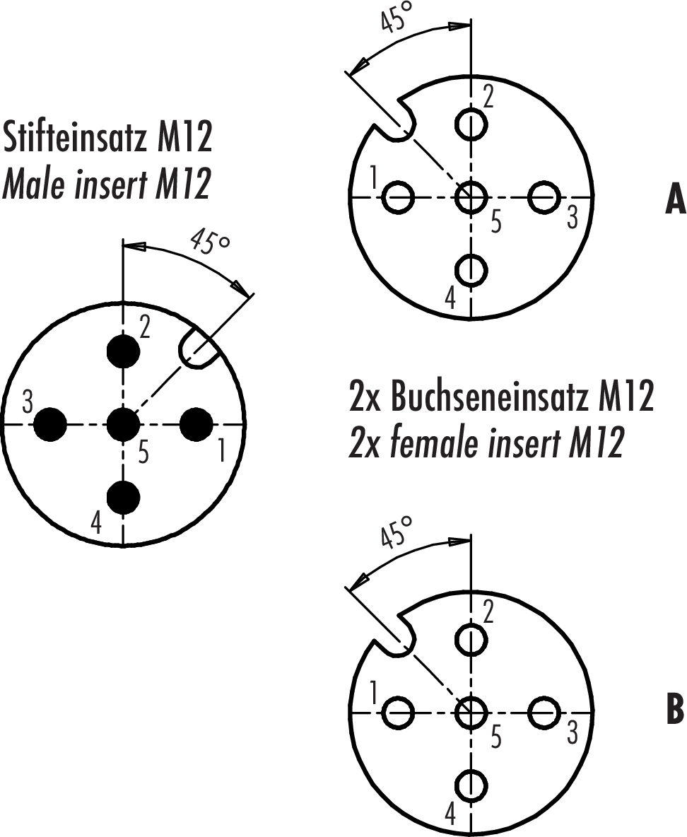 Polzahl: 5, nicht geschirmt, steckbar, IP68, UL listed, M12x1