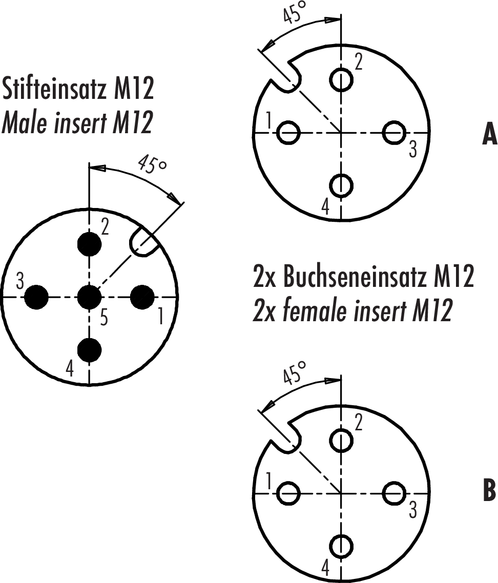 Polzahl: 5/4, nicht geschirmt, steckbar, IP68, UL listed, M12x1
