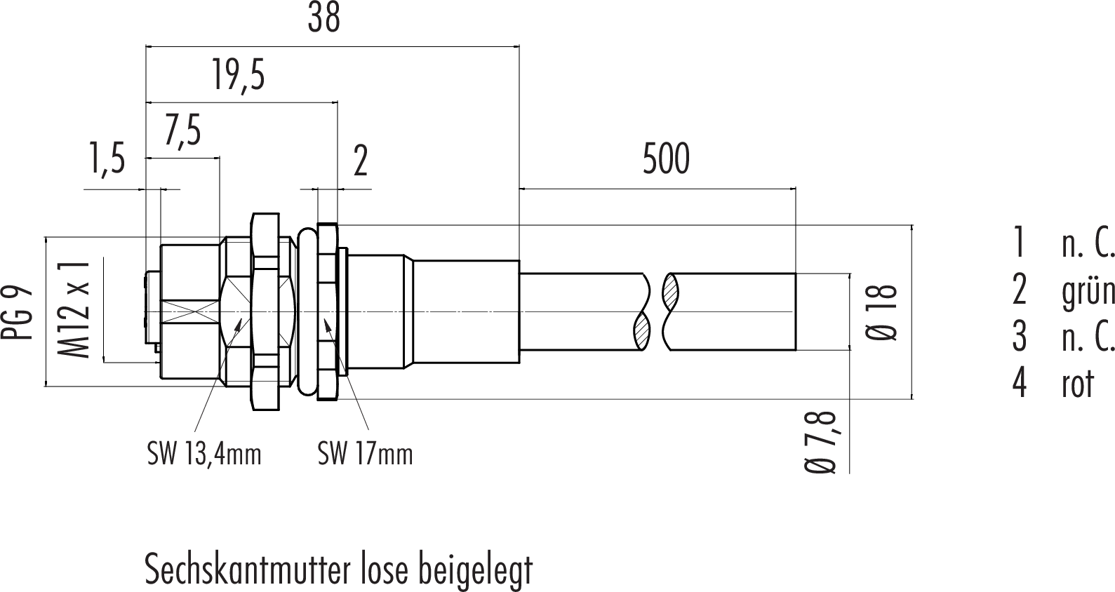 Polzahl: 2, geschirmt, Kabel, IP68, PG9, 1 x 2 x 0,25 mm²