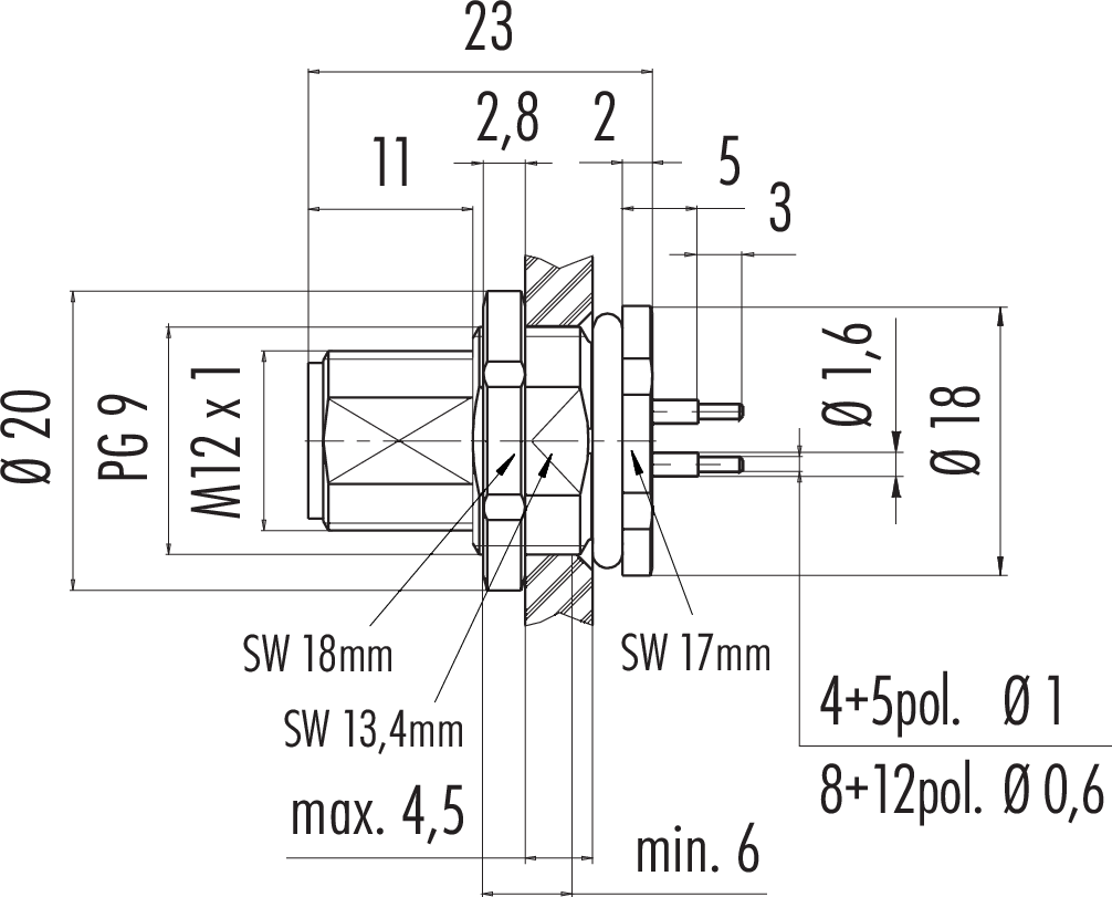 Polzahl: 5, nicht geschirmt, tauchlöten, IP68, UL, PG9