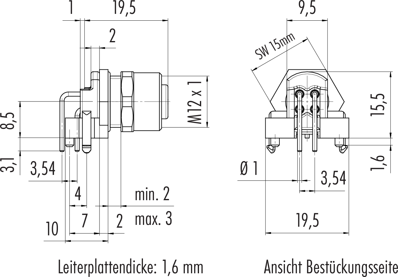 Polzahl: 4, schirmbar, mit Schirmblech, tauchlöten, IP67, UL