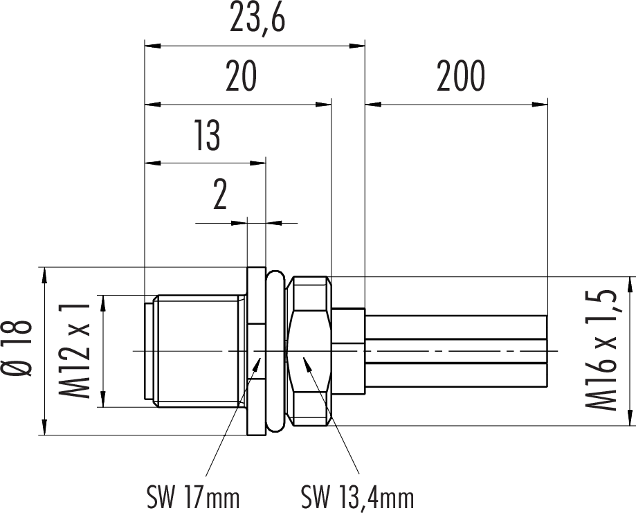 Polzahl: 3+PE, Litzen, IP68, M16x1,5