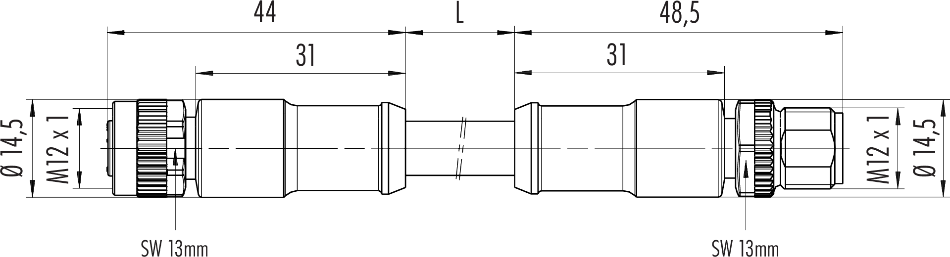 Polzahl: 3+PE, IP68, M12x1, PUR Kabel schwarz, 4 x 1,5 mm²