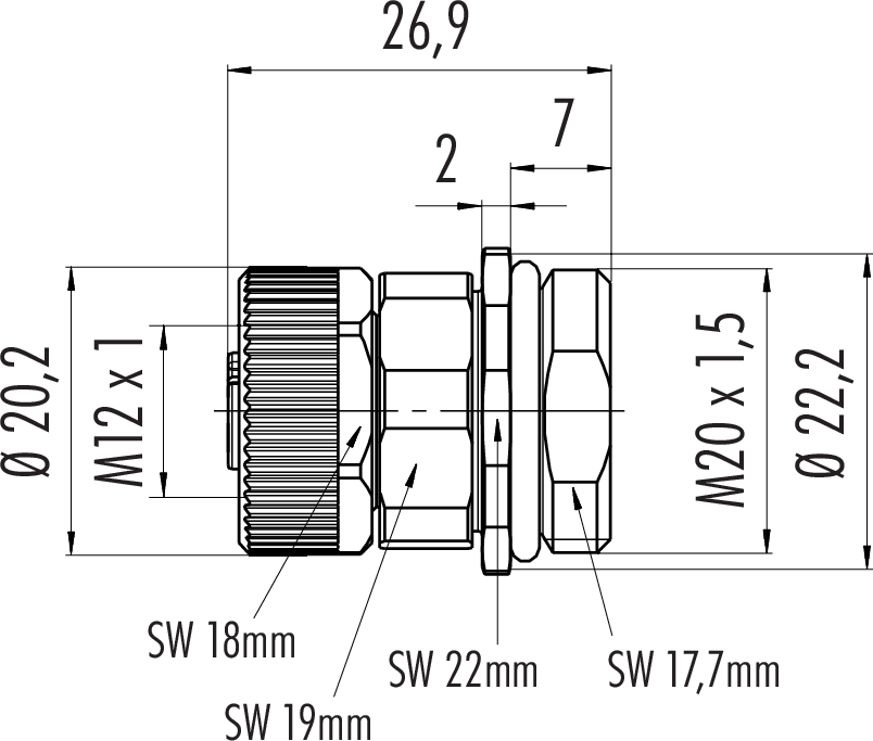 Polzahl: 4, nicht schirmbar, schraubklemm, IP68, UL