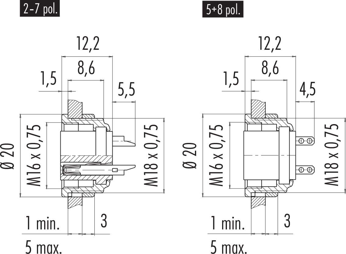Polzahl: 8 DIN, nicht schirmbar, Litzen, IP40