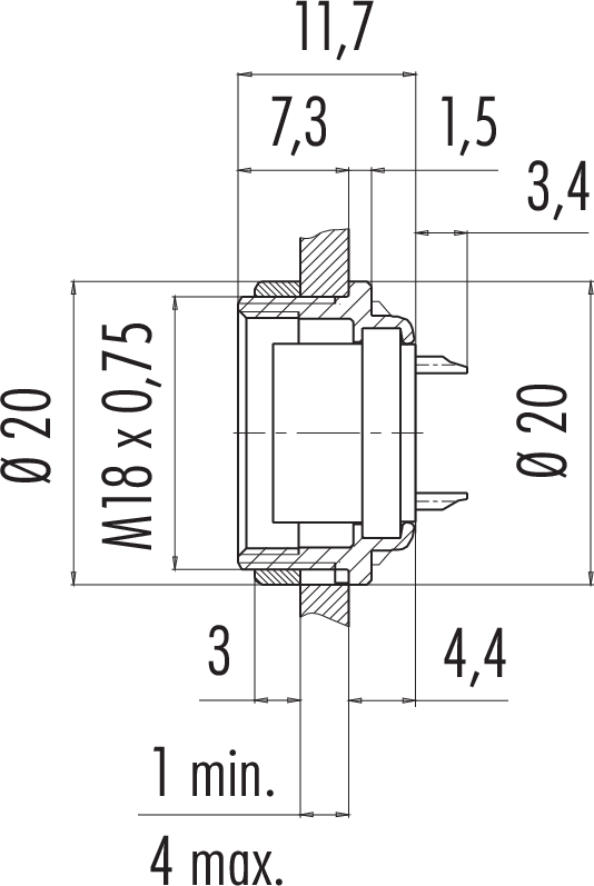 Polzahl: 16, nicht schirmbar, löten, IP40