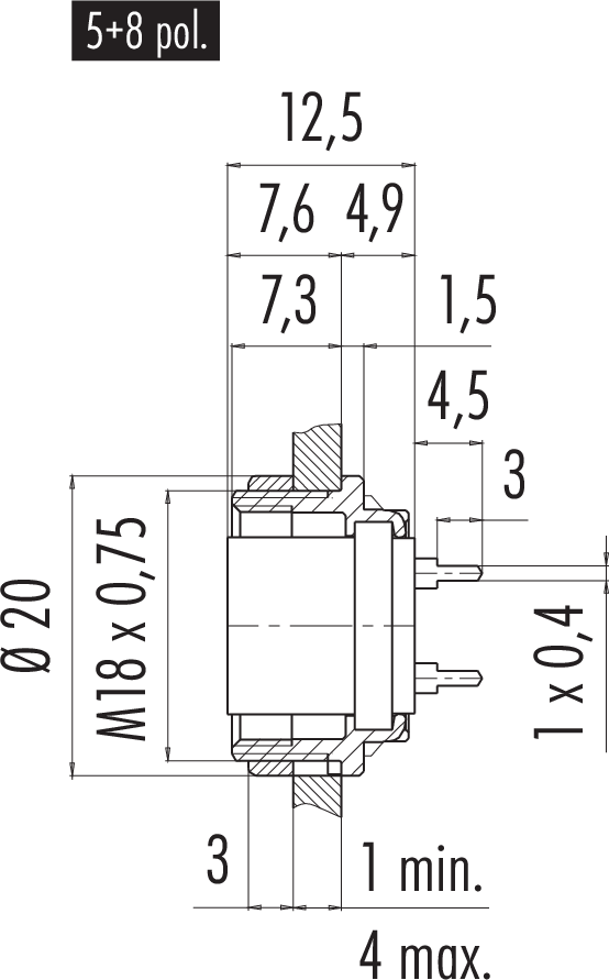 Polzahl: 4, nicht schirmbar, tauchlöten, IP40