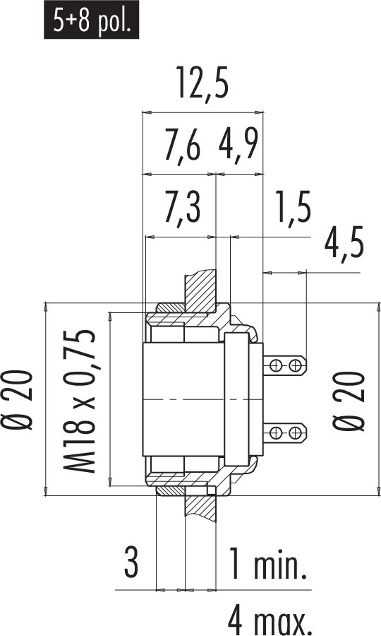Polzahl: 4, nicht schirmbar, löten, IP40