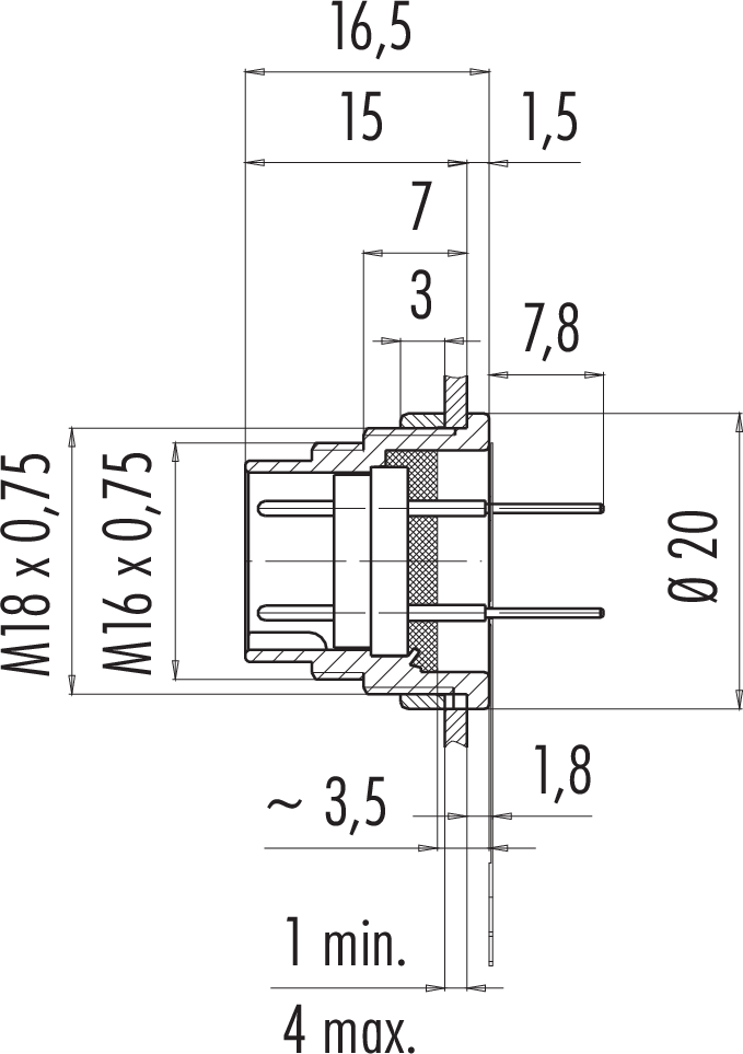 Polzahl: 12, nicht schirmbar, tauchlöten, IP40