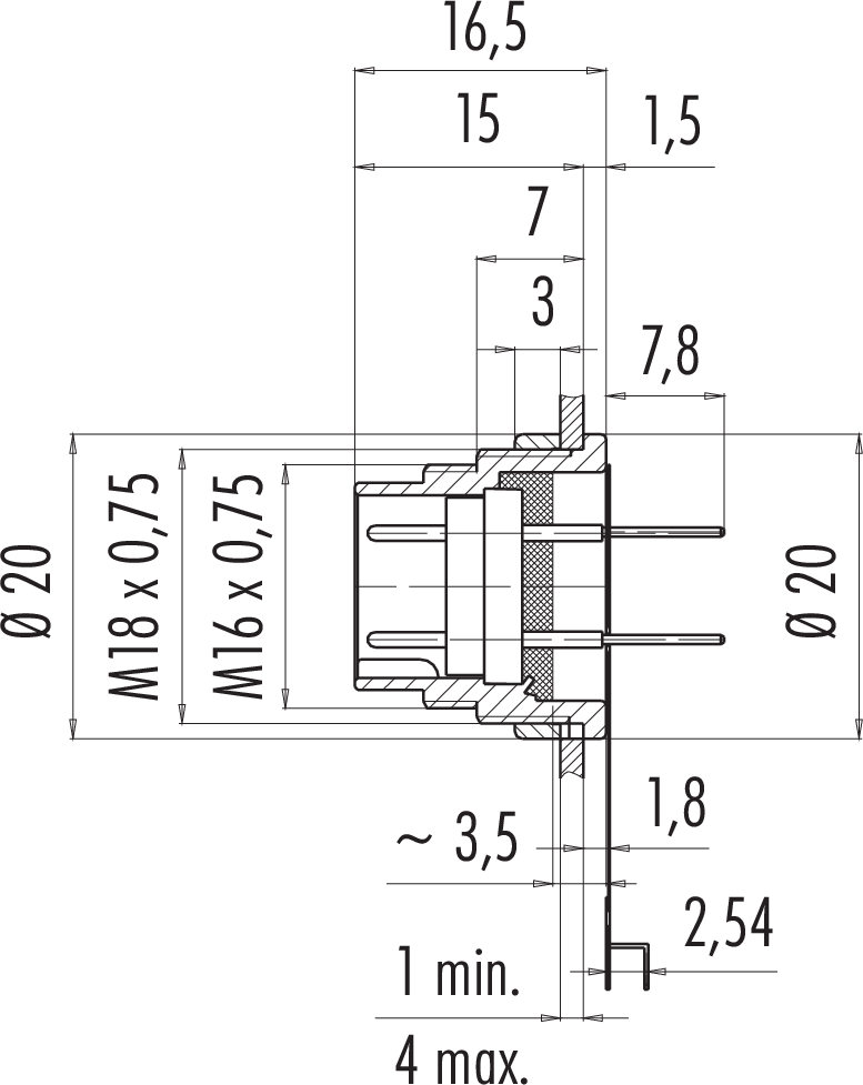 Polzahl: 12, nicht schirmbar, tauchlöten, IP40