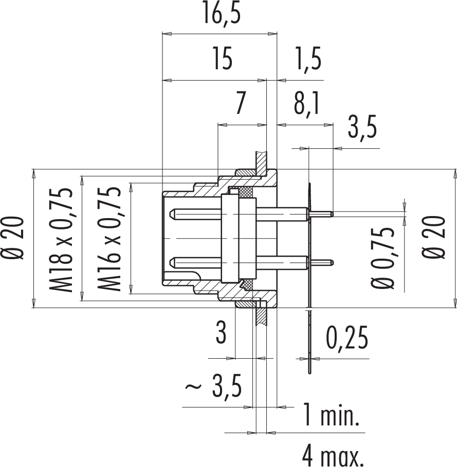 Polzahl: 7, nicht schirmbar, tauchlöten, IP40