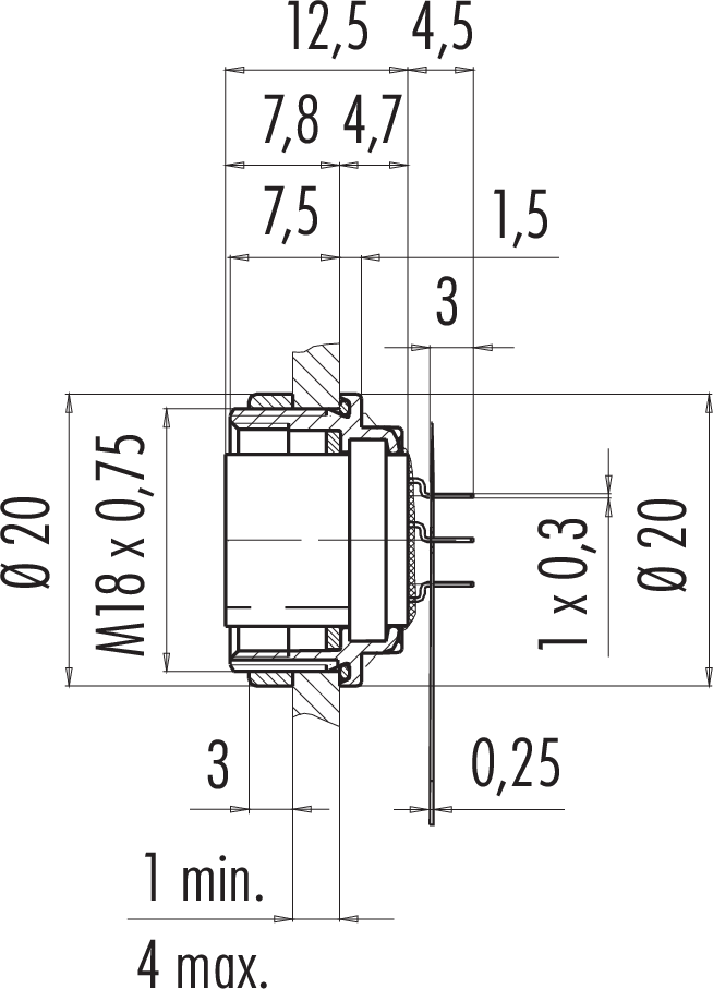 Polzahl: 7, nicht schirmbar, tauchlöten, IP67