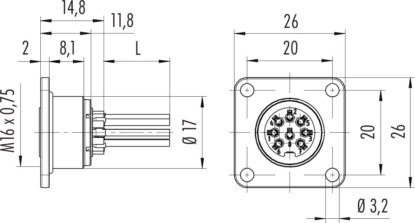 Polzahl: 8 DIN, nicht schirmbar, Litzen, IP67, UL