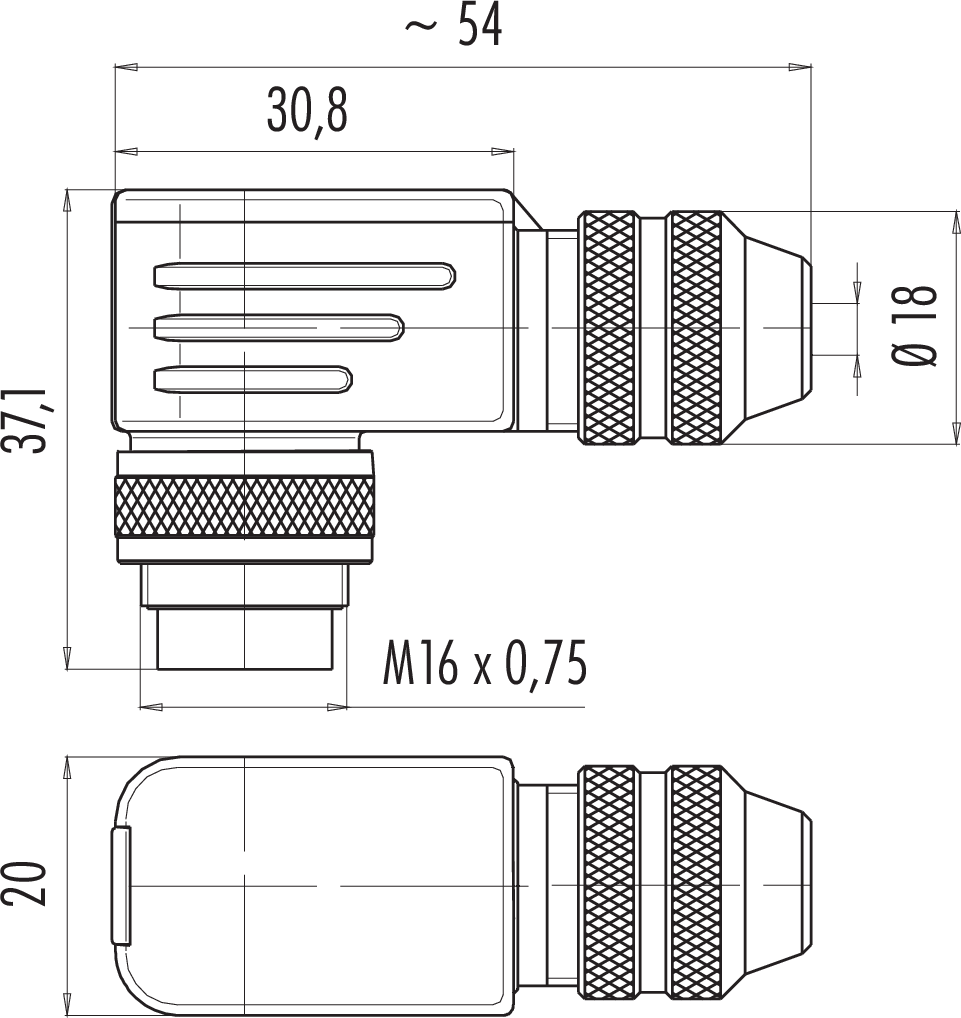 M16 IP67 Winkelstecker