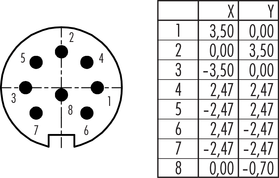 Polzahl: 8 DIN, 6,0 – 8,0 mm, nicht schirmbar, löten, IP67