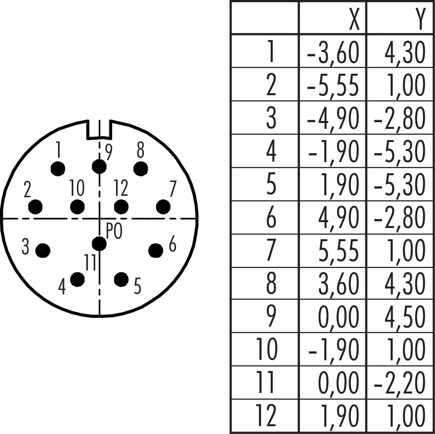 Polzahl: 12, 6,0 – 10,0 mm, nicht schirmbar, löten, IP67