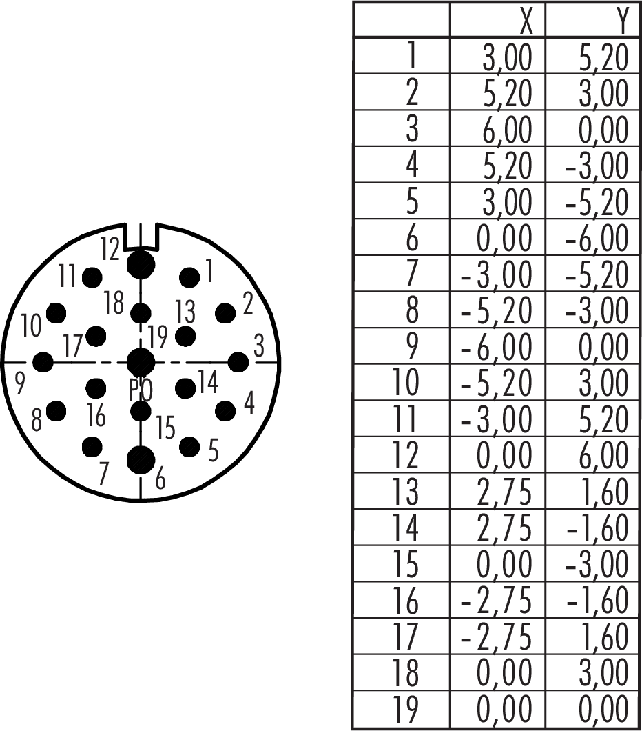 Polzahl: 19, 6,0 – 10,0 mm, nicht schirmbar, löten, IP67