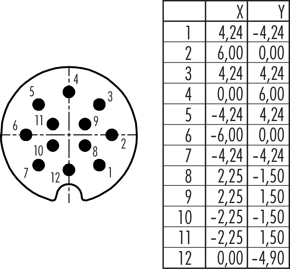 Polzahl: 12, 5,0 – 8,0 mm, nicht schirmbar, löten, IP40